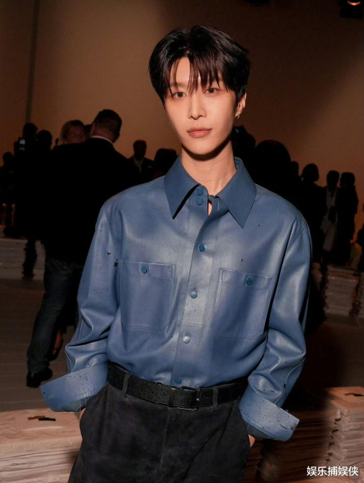 范丞丞,蓝色皮质衬衫配绒面长裤,潮流感十足。这身搭配彰显了“先锋随性”的时尚风格,粉丝点赞:“范丞丞你是偷了时尚博主的衣柜吗?”