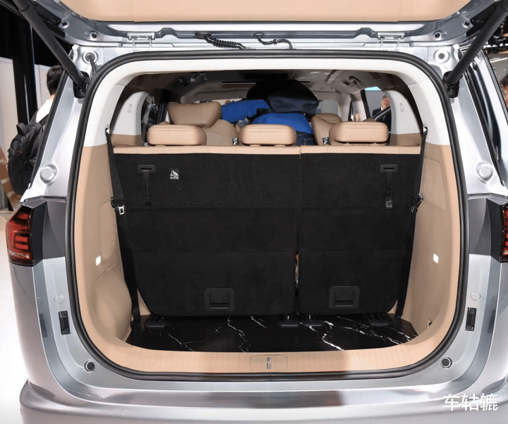 全员舒适,彻底告别“第三排将就”。新车采用3580mm纯平地台和1260mm车内净高,第三排座椅进深517mm、坐垫高度365mm,真正实现三排乘客同权享受。中排零重力航空座椅获得中汽研“舒适之星”认证,七座满员状态下后备箱仍可容纳多个24寸行李箱。这意味着全家出游,行李和人都能体面安置。