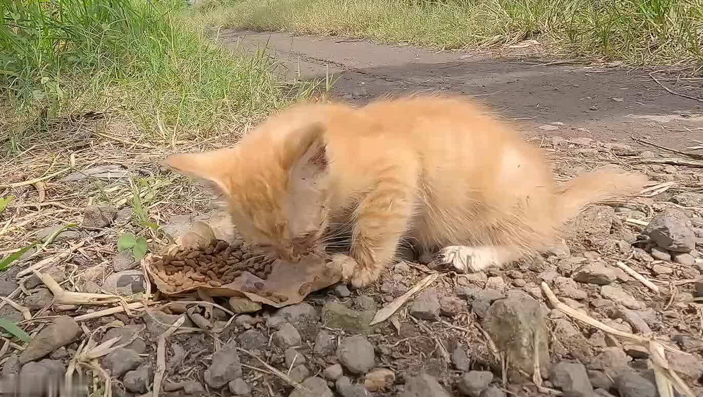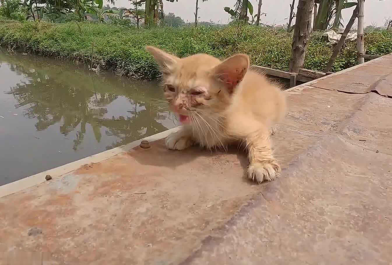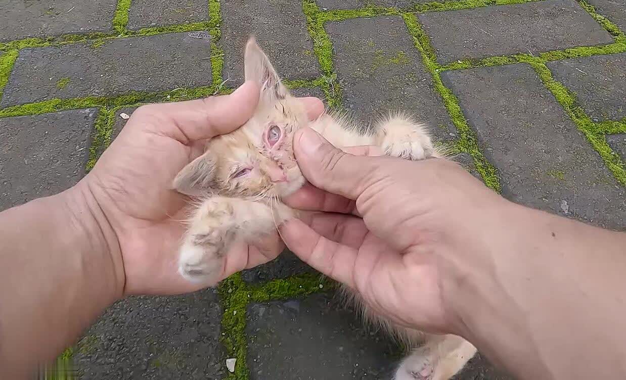 网友发现这只猫时,它正孤零零地趴在水坑边。它太小了,甚至还不到完全断奶的年纪,一双还没有彻底睁开的眼睛在灰尘与水汽中闪烁着——不是锋利,而是期盼。