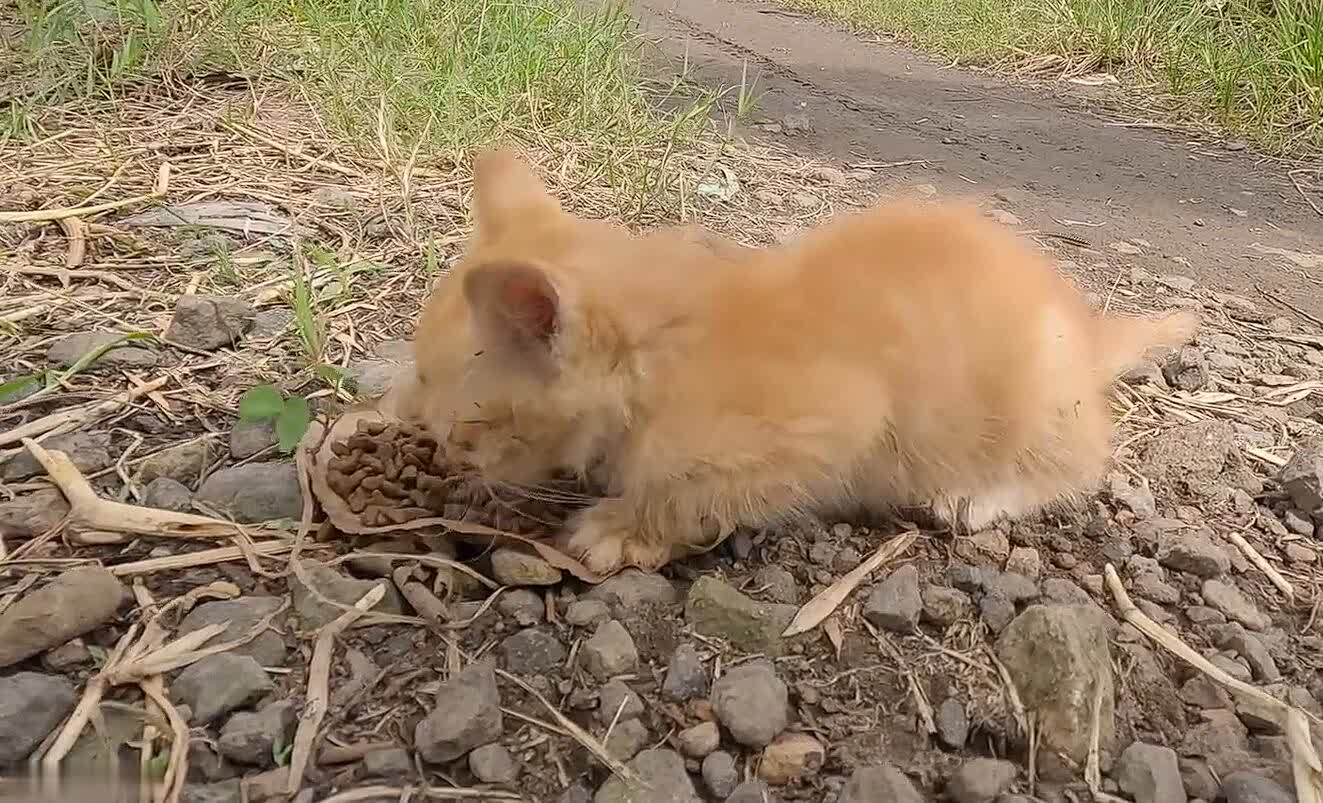 小猫果然饿坏了,前爪踩在盖子边缘,埋头就吃,一边吃一边还发出咕噜咕噜的声音,仿佛在说:“谢谢你。”