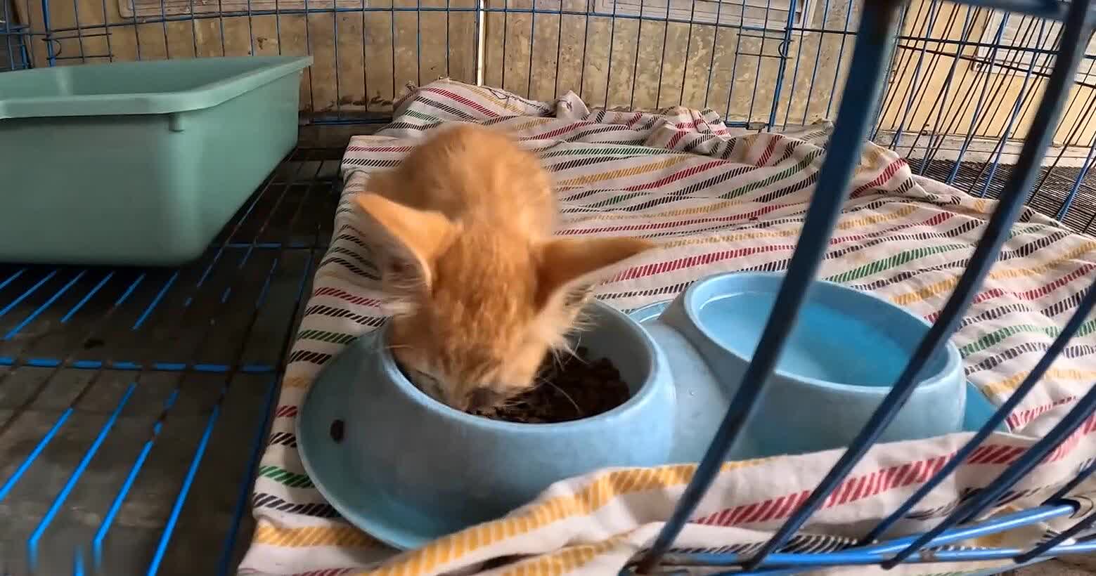 回到小院后,小哥没有立即将小猫放进公共区域。为了避免传播疾病,也为了更好地护理,他先将猫咪放进了一个干净的隔离笼中。