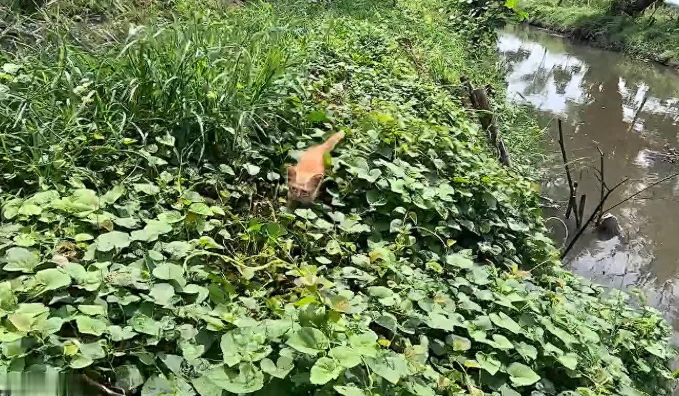 没有迟疑,他立刻骑上电动摩托车,顶着烈日,沿着网友提供的路线一路寻找。到达现场时,河边依旧潮湿、炎热,草丛中一片安静。猫呢?